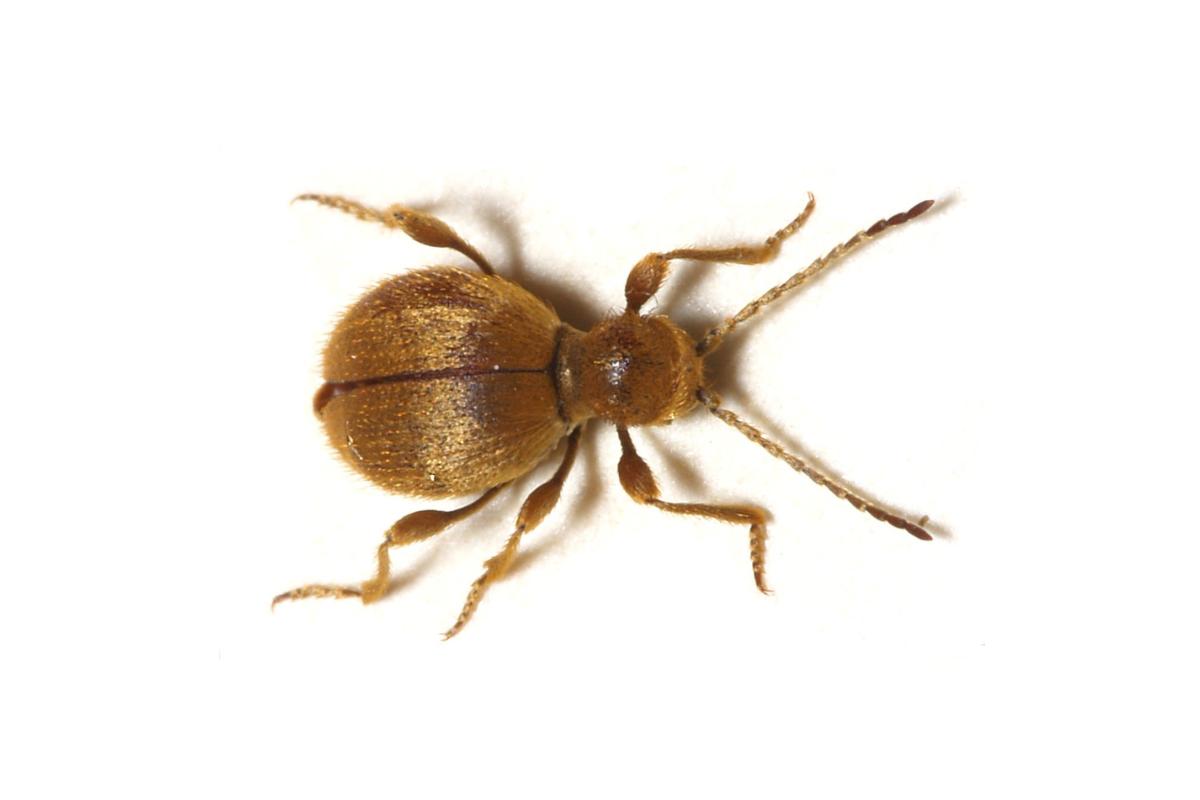 Mide de 1 a 5 milímetros, se parecen a las chinches por su pequeño cuerpo redondeado y color café o marrón rojizo. Por su cuerpo redondo recuerdan a las arañas, pero no lo son, sino que son escarabajos. La alimentación es carroñera, alimentándose de animales muertos o materia vegetal seca. No son hematófagos, así que no hacen daño a los humanos, pero sí pueden causar daños a tejidos, alacenas, jardines, etc.
