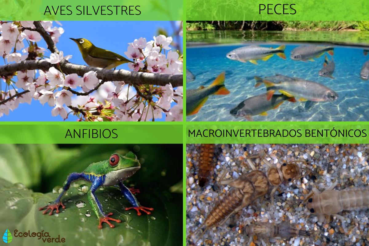 - Anfibios y peces como bioindicadores de la ausencia de metales pesados en las aguas en las que habitan.