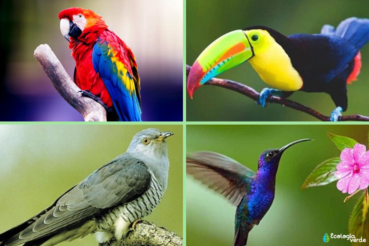 En los bosques tropicales podemos encontrar más de 25.000 aves distintas que se dividen entre depredadoras y herbívoras o frugívoras. Algunos ejemplos más característicos son: