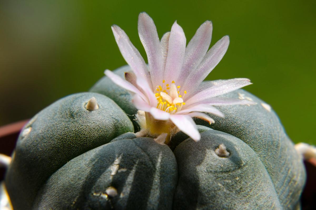 Esta cactácea tiene valor cultural para los indígenas huicholes del norte de México por los psicoactivos que contiene, pero además tiene valor por ser muy estético. Es esférico con divisiones muy marcadas y apenas emerge de la tierra. Es pequeño y puede pasar desapercibido. Mide de 2 a 10 centímetros máximos de diámetro. El color es verde grisáceo claro, y se distinguen areolas sin espinas pero sí con tricomas. Sus flores son de rosa claro a blanco. Tiene un crecimiento demasiado lento, por lo que las extracciones lo han llevado a estar vulnerable a desaparecer. Ante esto, la legislación mexicana ha prohibido la extracción por parte de personas que no sean locales.