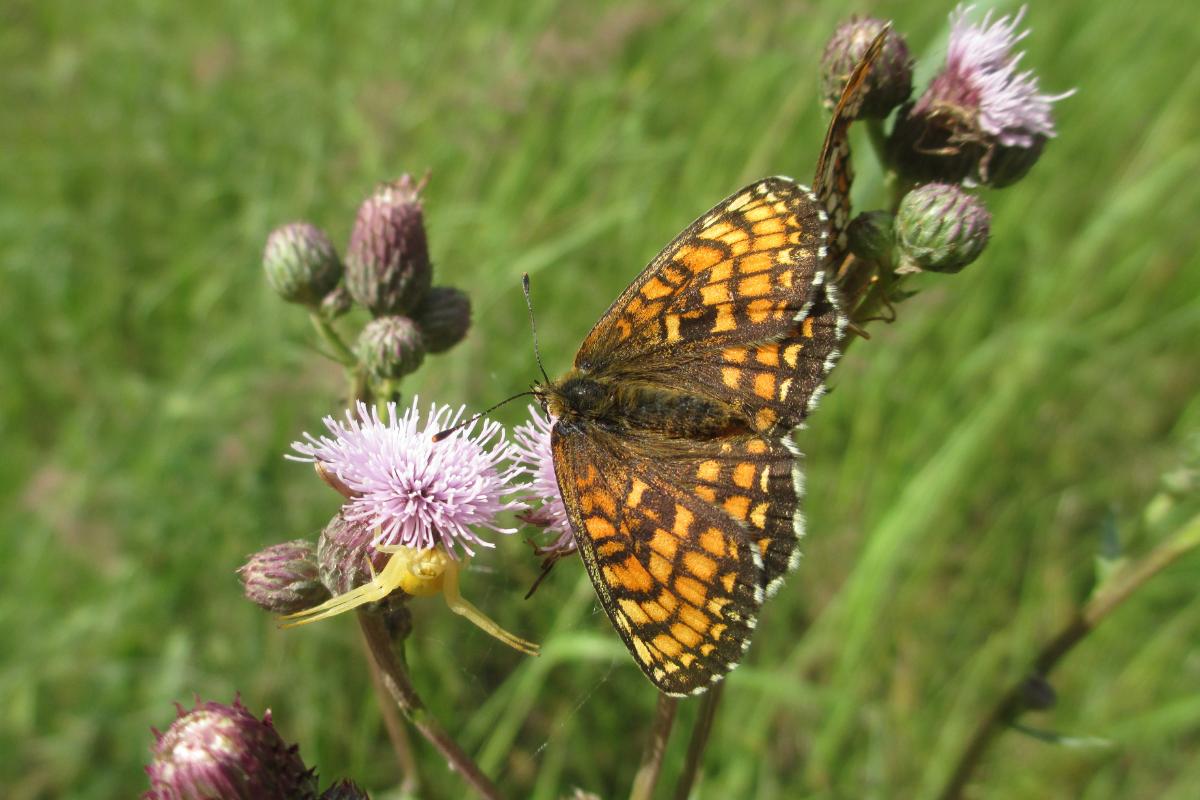 - Las flores producen néctar que alimenta a las mariposas, siendo estas el consumidor primario. Ellas son consumidas por ranas, que se ayudan de su larga y pegajosa lengua para capturarlas incluso cuando están en vuelo. Las ranas son el consumidor secundario. Las serpientes consumen después a la rana, y finalmente, esta serpiente es el alimento de águilas.