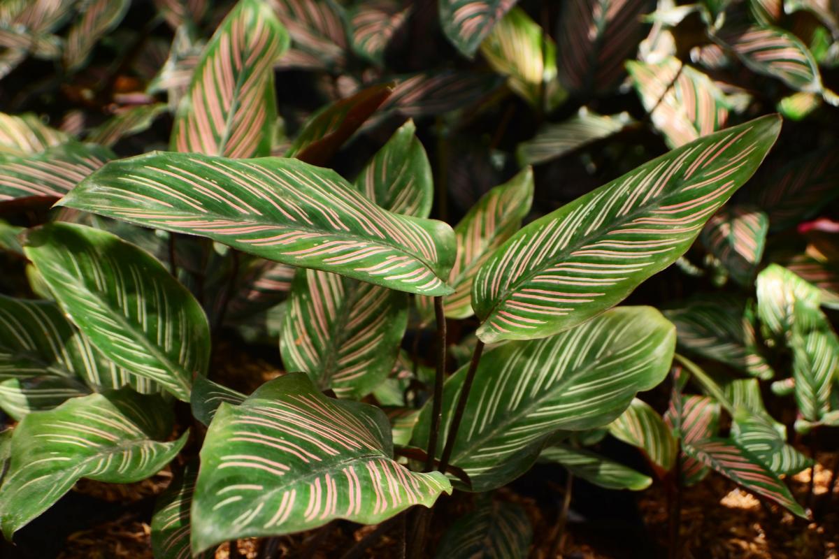 La Calathea ornata es una especie que se caracteriza por tener delgadas rayas blancas, rosas o verdes que parten del margen interior, y están ligeramente curvadas. Estas decoraciones están impresas en sus amplias hojas de color verde oscuro. Por la parte de abajo son color rojo a violeta. Por las finas líneas, en inglés se le conoce como calathea Pin Stripe, que hace alusión a una tela usada para elegantes sacos.