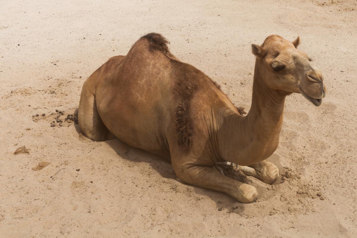 El dromedario, Camelus dromedarius, tiene una sola joroba en la que almacena grasa, útil para cuando el alimento escasea. Es originario del Oriente Medio donde ha sido domesticado, pero sus antecesores provienen de Asia y de la península arábiga. Son sensibles al frío y a la humedad, por lo que prefieren desiertos con periodos secos largos.
