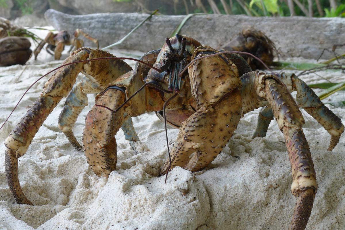El cangrejo cocotero tiene hábitos terrestres y es el cangrejo más pesado que existe, ya que puede llegar a pesar 4 quilos y medir un metro. Es conocido porque se alimenta principalmente de cocos, pero también pueden alimentarse de otras cosas y son carroñeros. El cangrejo del coco vive en pequeñas islas del océano Pacífico e Índico y se le puede encontrar en bosques costeros de piedra caliza.