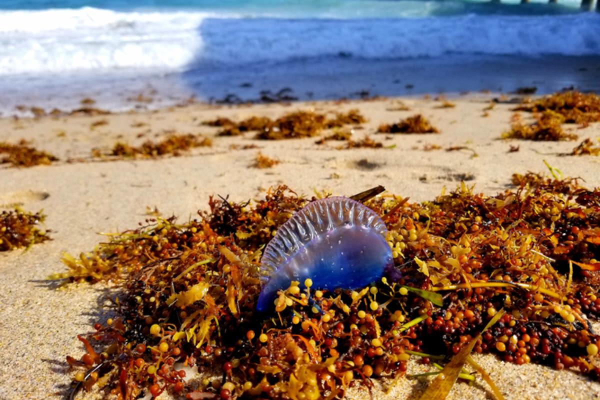 Es posible encontrar a Physalia physalis flotando en el mar, pero también varada en la arena de las playas, ya que es llevada por las corrientes marinas y los vientos.