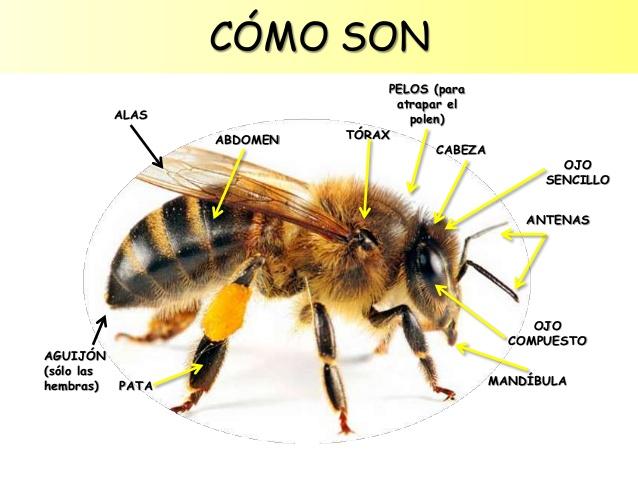 - La abeja melífera (esto es, la que elabora miel) es un artrópodo, pues tiene patas articuladas. Pertenece a la clase de los insectos y, además, es un insecto himenóptero, ya que posee alas membranosas. Las principales partes del cuerpo de las abejas son: cabeza, tórax y abdomen.