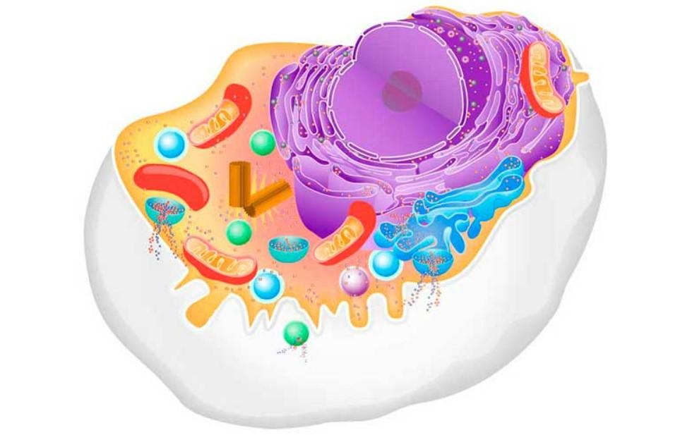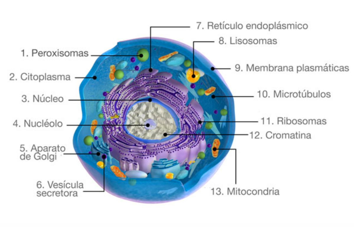 Para terminar de conocer las partes de la célula animal, puedes evaluartus conocimientos. Aquí abajo encontrarás una imagen de una célula para imprimir y practicar identificando los nombres de las principales partes de una célula animal.