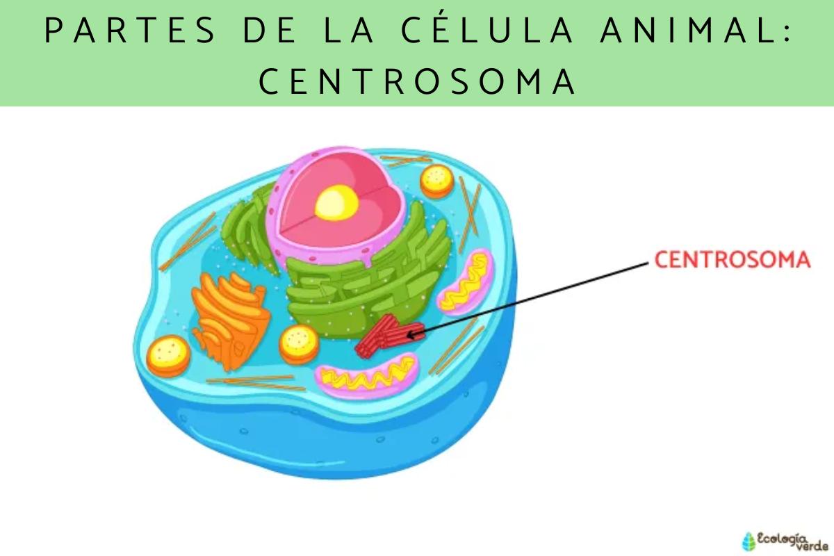 El centrosoma es característico de la célula animal y es una estructura cilíndrica y hueca compuesta por dos centriolos dispuestos de forma perpendicular entre sí. La composición de este organelo es de túbulos de proteína y tiene una función muy importante en la división celular, ya que organiza el citoesqueleto y da lugar al huso acromático durante la mitosis. También puede originar cilios o flagelos.