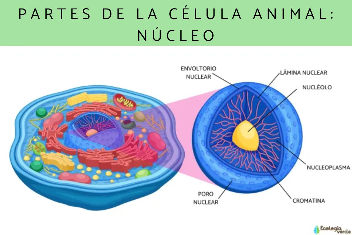 Es el organelo especializado en procesar y administrar la información de la célula. Normalmente, las células eucariotas cuentan con un solo núcleo, pero existen excepciones donde podemos encontrar más de uno. La forma de este orgánulo varía en función de la célula en la que se encuentre, pero por lo general tiene aspecto redondo. En él se almacena el material genético en forma de ADN (Ácido desoxirribonucleico) y es el que se encarga de coordinar las actividades de la célula: desde su crecimiento hasta la reproducción. El núcleo, además, cuenta en su interior con una estructura visible llamada nucléolo y que se forma por la concentración de cromatina y proteínas. Los mamíferos cuentan con un número de entre 1 y 5 nucléolos en la célula.