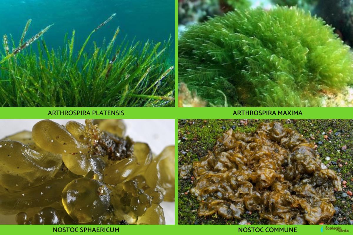 - Arthrospira platensis y Arthrospira maxima: pertenecientes al género Spirulina, son dos especies de cianobacterias de interés comercial. Se utilizan en la elaboración de la espirulina, un suplemento dietético energizante con alto contenido en proteínas, minerales, vitaminas y carotenos.