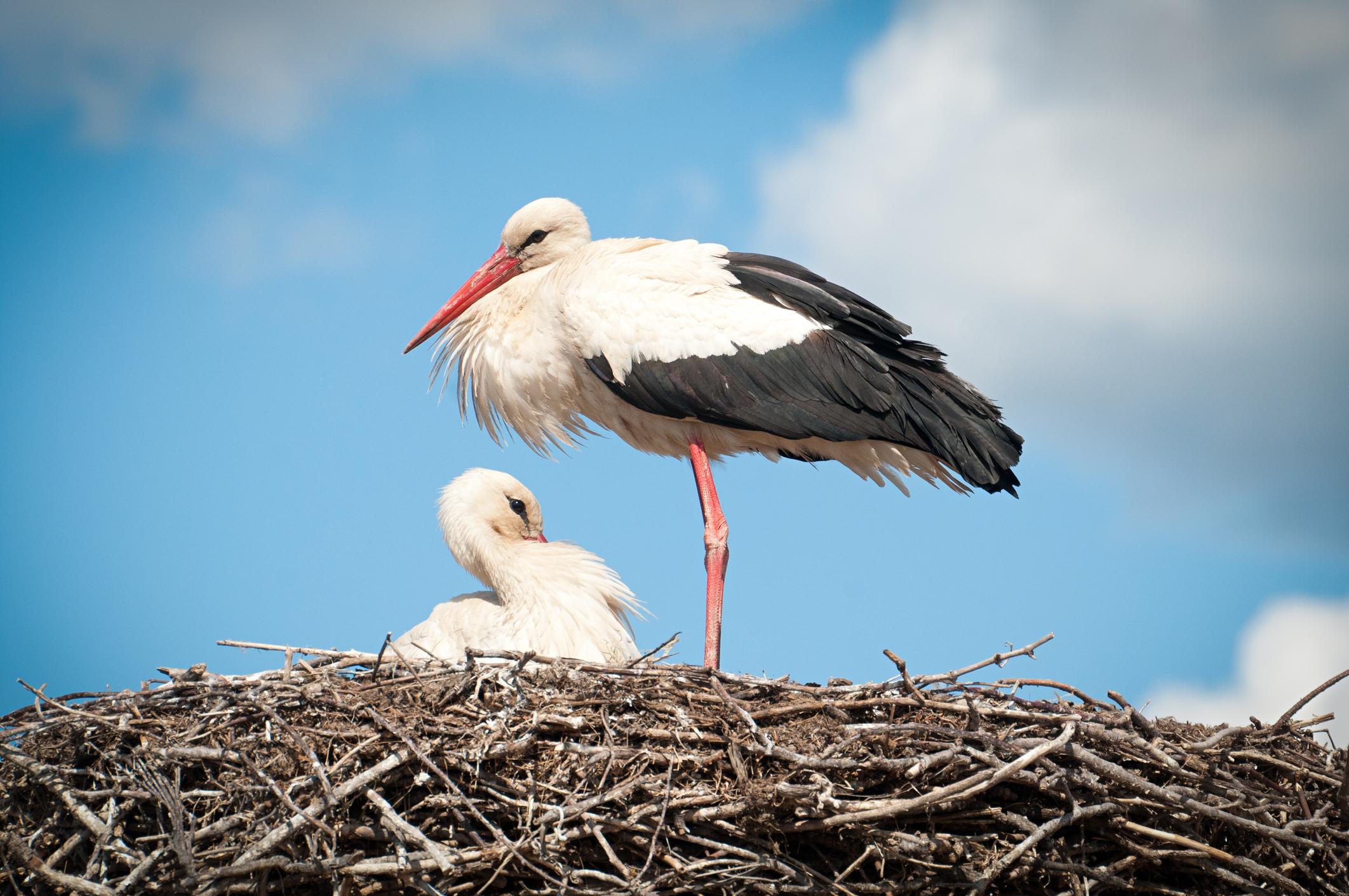 El nido que construyen las cigüeñas está hecho de ramas y otros materiales y alcanzan dimensiones de hasta dos metros de diámetro y 150 cm de altura. Este nido es único e irá creciendo cada año, es por eso que el nido alcanza grandes dimensiones y llega a pesar más de 300 kg de peso.