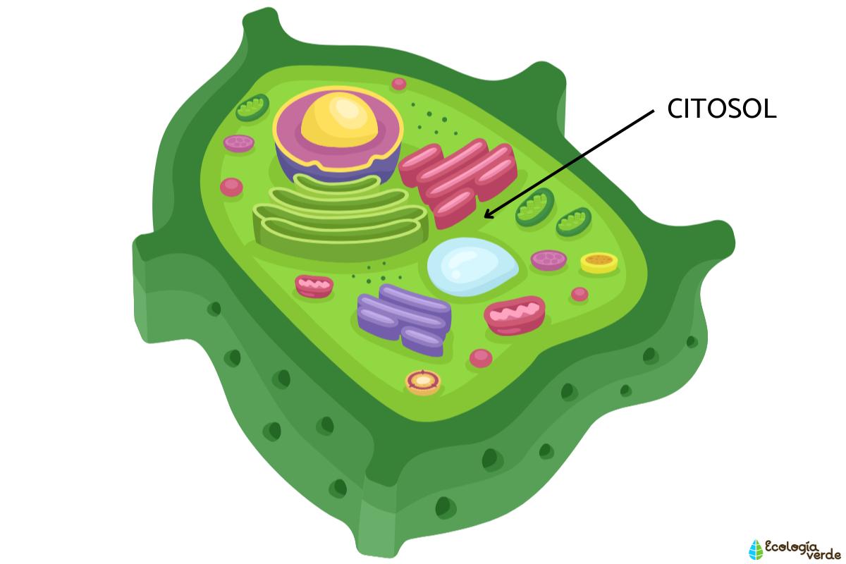 El citosol es una matriz amorfa que ocupa los espacios que quedan entre los organelos celulares, se encuentra ubicado entre la membrana celular y el núcleo. Este medio acuoso está compuesto en su mayor parte por agua, que representa aproximadamente el 70% de su volumen, además de contener iones, sales, aminoácidos, azúcares y proteínas, como enzimas. Estas sustancias son esenciales para los procesos metabólicos que mantienen la célula activa y funcional.