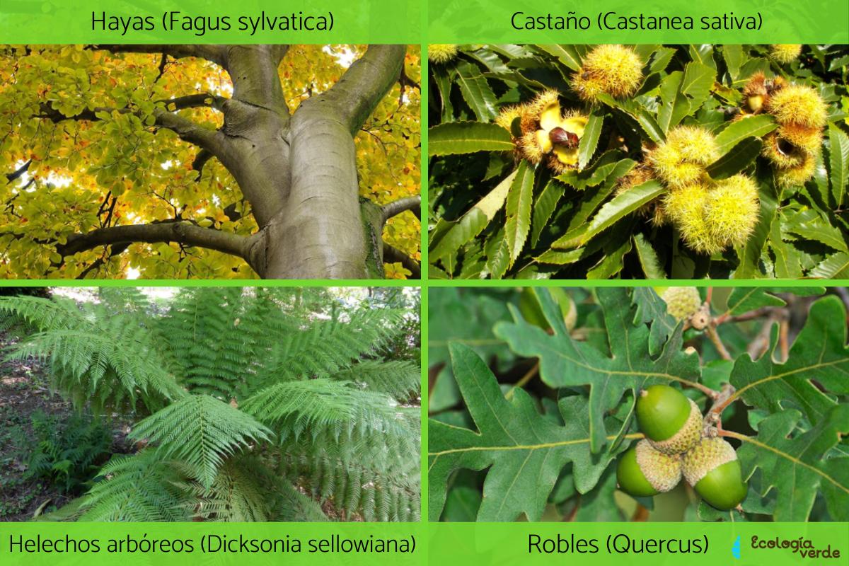 - Bosques templados húmedos: se encuentran a una altitud media, y reciben grandes cantidades de agua procedente de las precipitaciones.