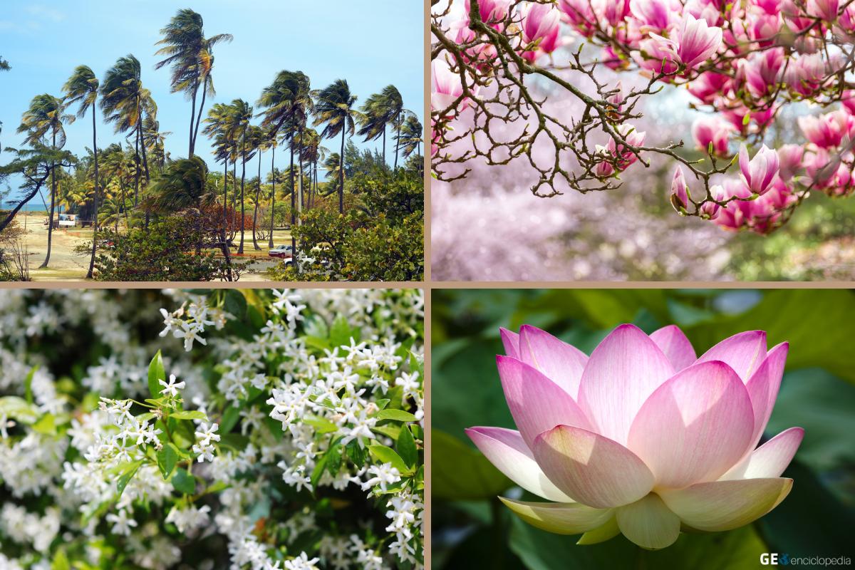 - Arbustos y trepadoras: se desarrollan en las regiones subtropicales y muchas de las especies presentan flores con diversos colores y aromas. Algunas especies populares incluyen el jazmín, la gardenia, el hibisco, la camelia y la azalea.