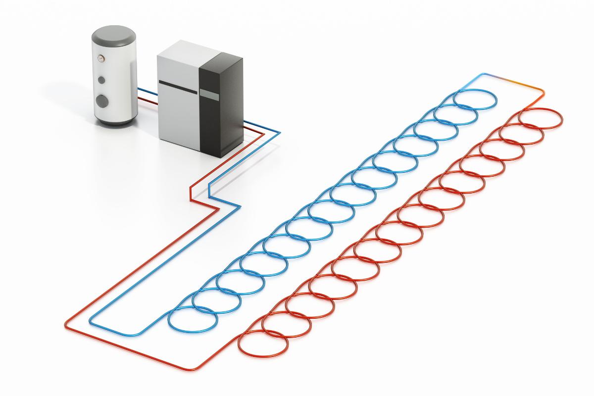 Las bombas de calor geotérmicas aprovechan la temperatura constante del suelo, que se mantiene relativamente constante durante todo el año. Estos sistemas constan de un bucle geotérmico enterrado en el suelo y una bomba de calor en el interior de la vivienda. El bucle geotérmico puede ser horizontal o vertical. En el caso de un bucle horizontal, se instala a profundidades más superficiales, generalmente en un patio. Un bucle vertical implica perforar pozos más profundos en el suelo.