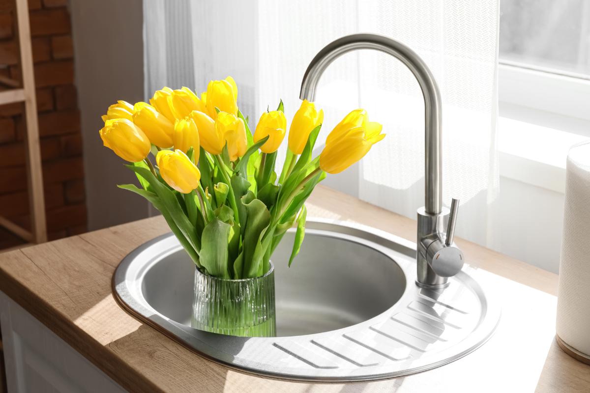 Las frutas y verduras desprenden etileno, y este gas envejece rápidamente a los tulipanes. Procura mantener el florero fuera de la cocina y lejos de vegetales comestibles.