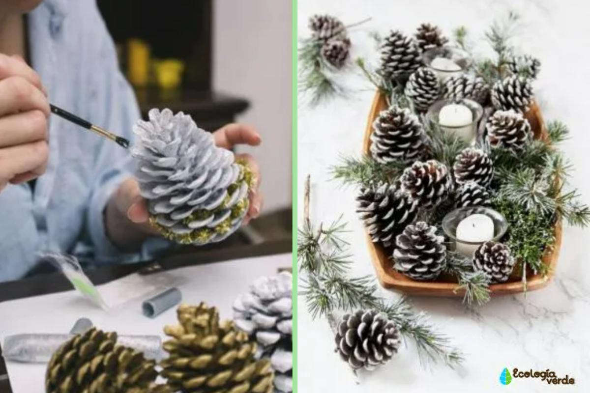 Algunas ideas decorativas para hacer adornos navideños con piñas son hacer centros de mesa, guirnaldas con piñas secas, adornos para el árbol de Navidad, velas navideñas y coronas de piñas. En este artículo de EcologíaVerde te proponemos hacer adornos de Navidad ecológicos, económicos y fáciles usando piñas de pino. Además, hacer manualidades con piñas secas puede ser muy divertido, una actividad perfecta para hacer en familia. Sigue leyendo y descubre cómo hacer adornos navideños con piñas, desde centros de mesa hasta decoración para la puerta de tu hogar.