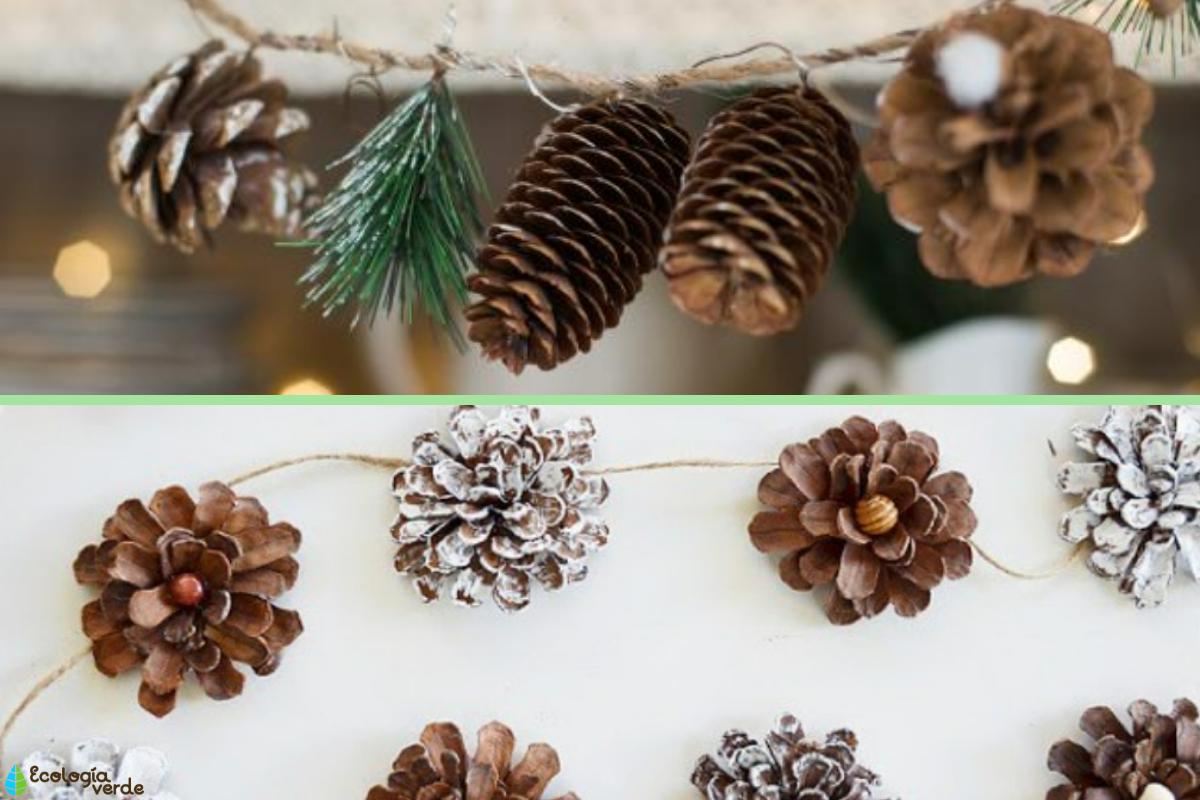 Si quieres decorar tu árbol de Navidad, algunas paredes o esquinas o incluso la chimenea una idea muy decorativa, económica, sencilla y natural es hacer guirnaldas con piñas de pino secas.