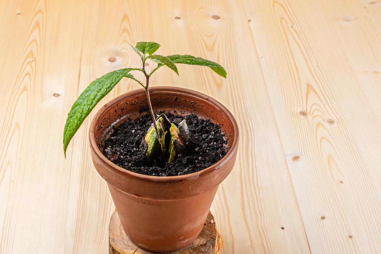 - Prepara la maceta: una vez tengas tu árbol de aguacate pequeño, prepara el recipiente. Necesitarás una maceta grande, con una profundidad de al menos 50 cm. Es importante que la maceta tenga agujeros de drenaje y que preparemos un sustrato ligeramente ácido. La mezcla de turba, fibra de coco y humus de lombriz con perlita será adecuada para ello, y resulta muy rica en nutrientes.