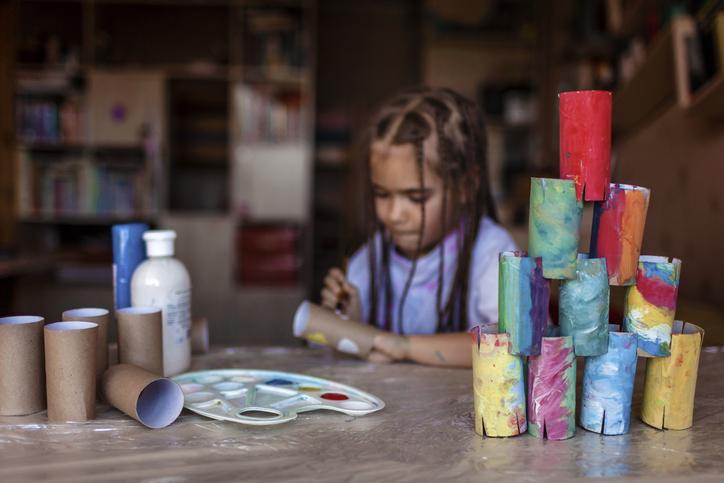 - Bolos: se pueden decorar con pinturas y luego apilarlos para jugar a los bolos con cualquier pelota que tengan los niños.
