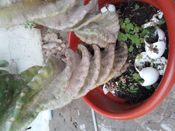 Hola, escribo nuevamente porque no me han contestado aún, les comente que tengo un cactus espiral que se m lleno de bichotis marroncito, lo limpie con agua y jabón blanco, en un principio parecía recuperarse y de pronto tiene un aspecto q se erta secando. Podrían decirme q