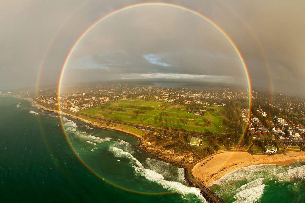 Como ya se ha mencionado en el apartado anterior, realmente el arco iris es una circunferencia. Lo más habitual es que cuando lo observamos veamos solo un arco, esto ocurre porque estamos situados sobre la superficie terrestre.