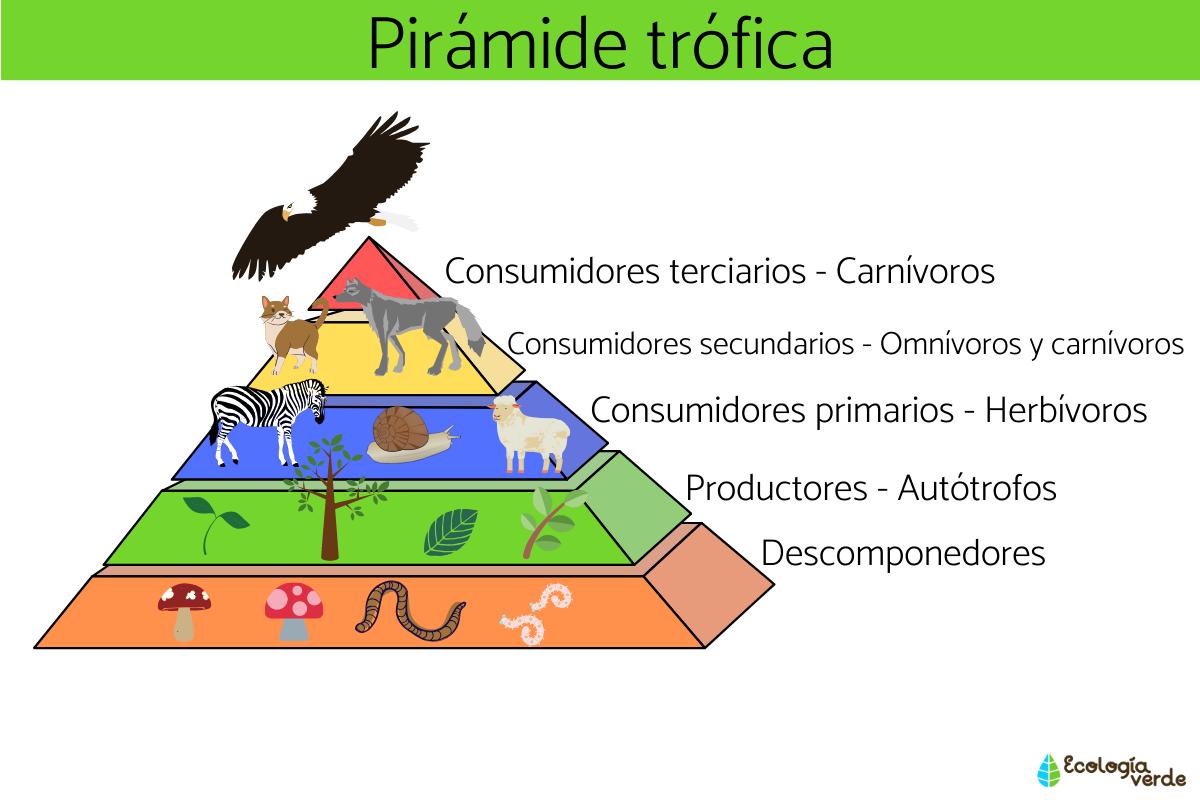 Como hemos visto, en la cadena alimentaria se diferencian varios niveles tróficos: productores, consumidores y descomponedores. No obstante, dentro del grupo de los consumidores se pueden ver distintos tipos. Aquí hemos hablado de los consumidores terciarios, pero en este apartado explicaremos de forma breve el resto de consumidores de una cadena trófica o de la pirámide trófica: