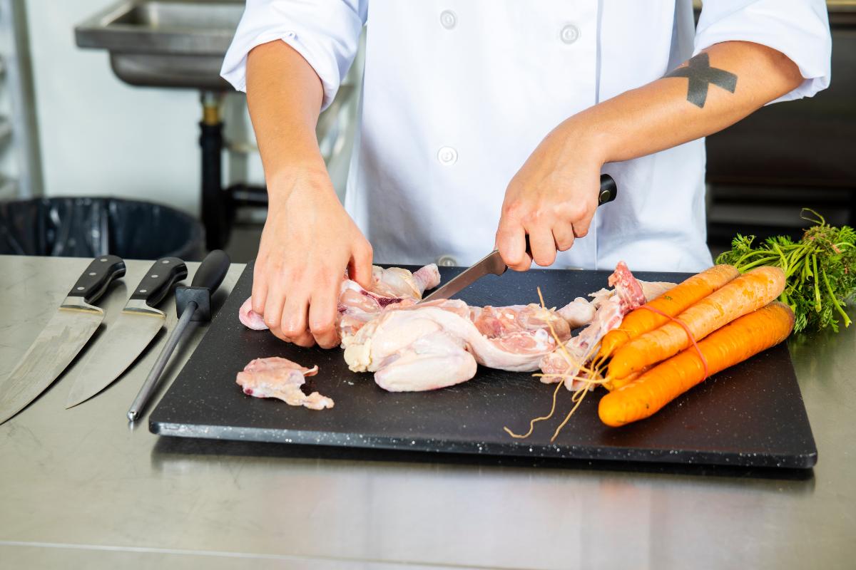 - Contaminación cruzada de equipos y utensilios: ocurre cuando los utensilios, equipos de cocina o herramientas se utilizan para manipular diferentes tipos de alimentos sin limpiarlos adecuadamente entre usos. Por ejemplo, utilizar un cuchillo para cortar carne cruda y luego usarlo para cortar vegetales sin lavarlo antes.