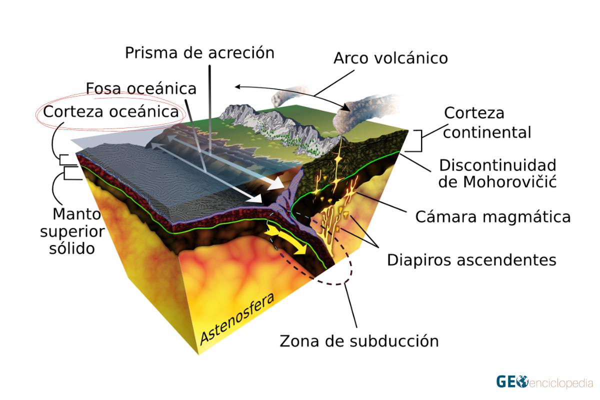 La corteza oceánica ocupa la parte más superficial de la geosfera y está en contacto con los océanos. Las condiciones subacuáticas que la someten promueven la creación de rocas submarinas características. En ella, se desarrollan procesos geológicos de gran importancia que determinan la dinámica terrestre. Por otra parte, la disposición de elementos químicos y la temperatura de la corteza oceánica propician la creación de ambientes donde se desarrollan especies biológicas singulares. Continúa leyendo este artículo de GEOenciclopedia para saber qué es la corteza oceánica, sus características y estructura.