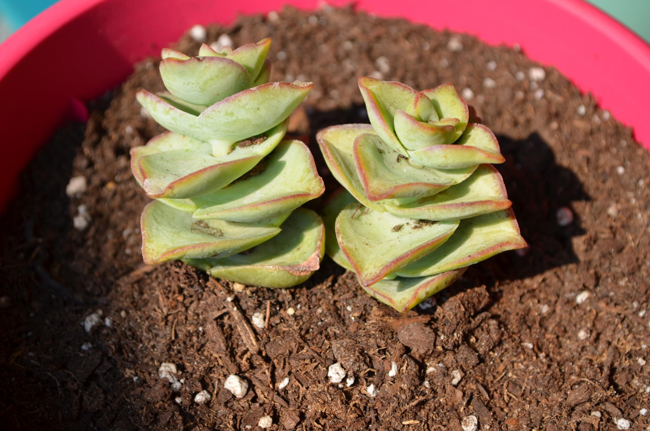 En exterior, en cambio, conviene proteger un poco más la Crassula. Debes buscarle una ubicación de semisombra, sobre todo si vives en una zona con un clima muy cálido o un sol muy intenso. Ponla relativamente a cubierto bajo alguna planta de mayor tamaño o bajo un toldo u otra cobertura parcial.