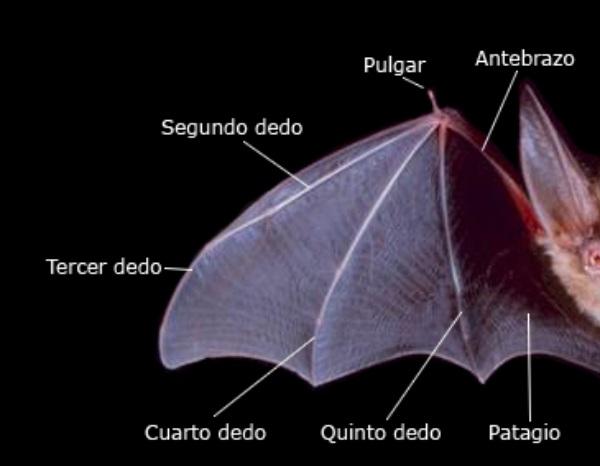 Los murciélagos son el único orden de mamíferos que tienen la capacidad de volar. En la imagen de abajo puedes observar el detalle del ala de un murciélago.