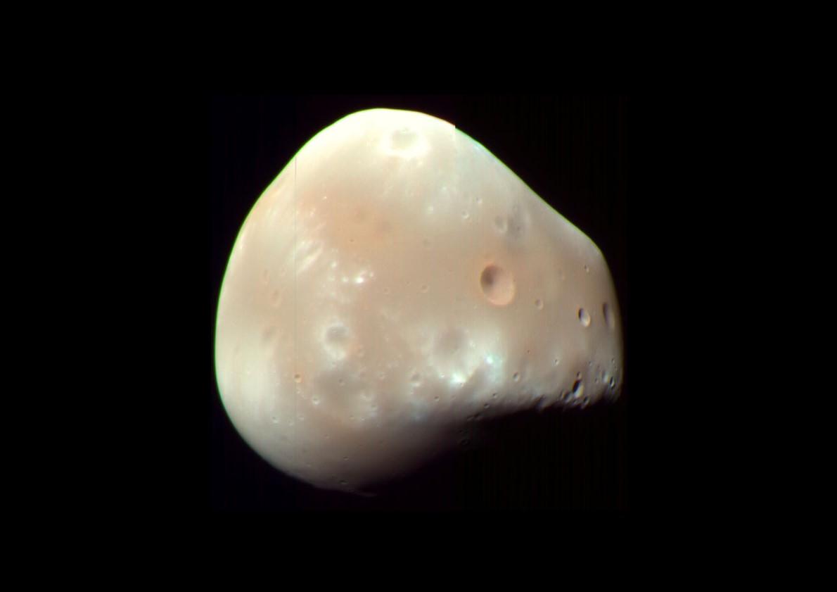 Rocíen en 1972 se obtuvieron las primeras imágenes de los satélites de Marte, capturadas por el orbitador Mariner 9 de la NASA. Ambas lunas no tienen forma circular sino más bien de papa o patata, esto tal vez se deba a que sus campos gravitacionales son tan débiles que los cuerpos no pueden vencer su equilibrio hidrostático y, por lo tanto, adoptar una forma redondeada.