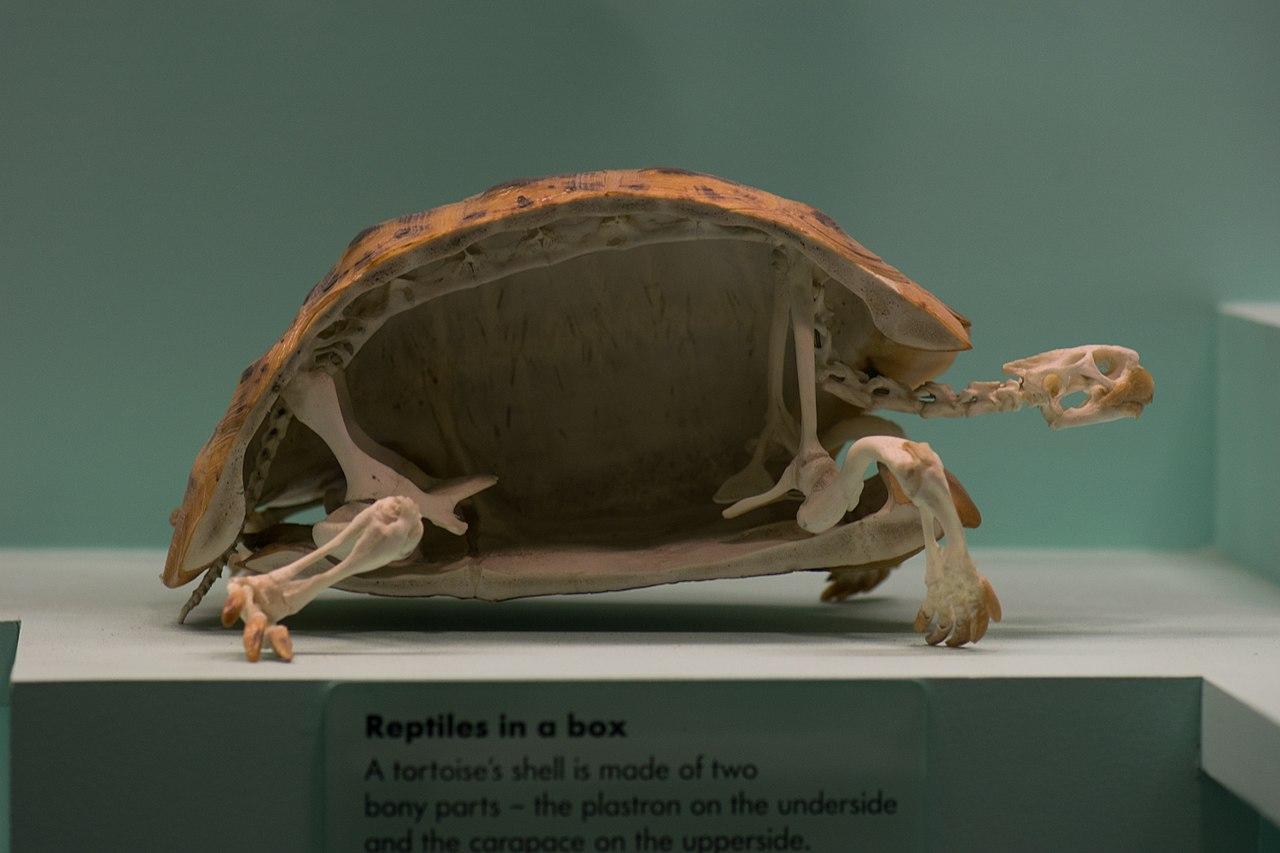El caparazón de las tortugas está formado por los huesos de la columna, cintura escapular y costillas, todos fusionados junto con piel osificada y que están cubiertos por placas óseas. Hay quienes piensan que bajo el caparazón está la tortuga, pero el caparazón es realmente la tortuga y es inseparable de ella. Tiene la función de proteger contra depredadores. Bajo estas placas se forman otras nuevas cada año y pueden verse los anillos de crecimiento en algunas especies, especialmente en las completamente terrestres. En algunas tortugas acuáticas el caparazón está muy reducido porque no necesitan tanto de esa protección. Cabe mencionar que no todas las tortugas se retraen dentro de su caparazón.