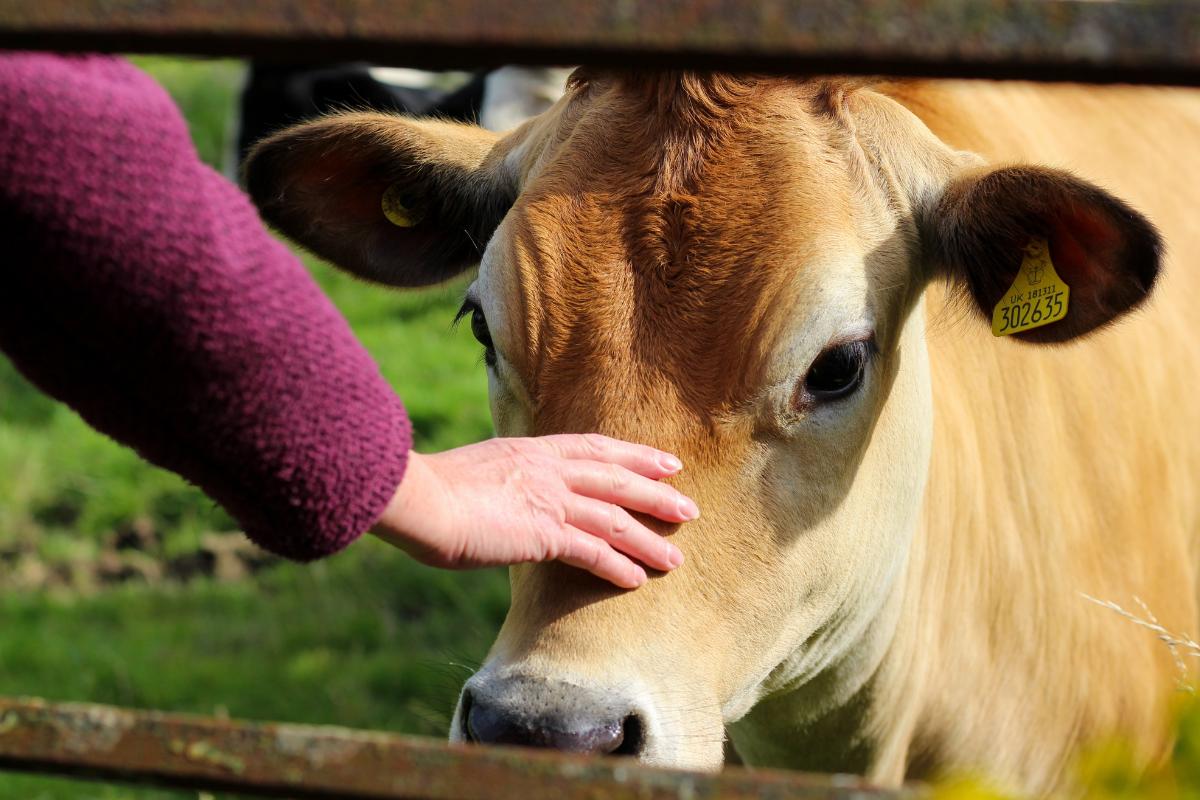 Los estudios han demostrado que el contacto humano positivo puede mejorar las relaciones entre las vacas y las personas. Caricias suaves en su cuello, por ejemplo, pueden reducir el miedo de las vacas hacia los humanos, independientemente de su personalidad.