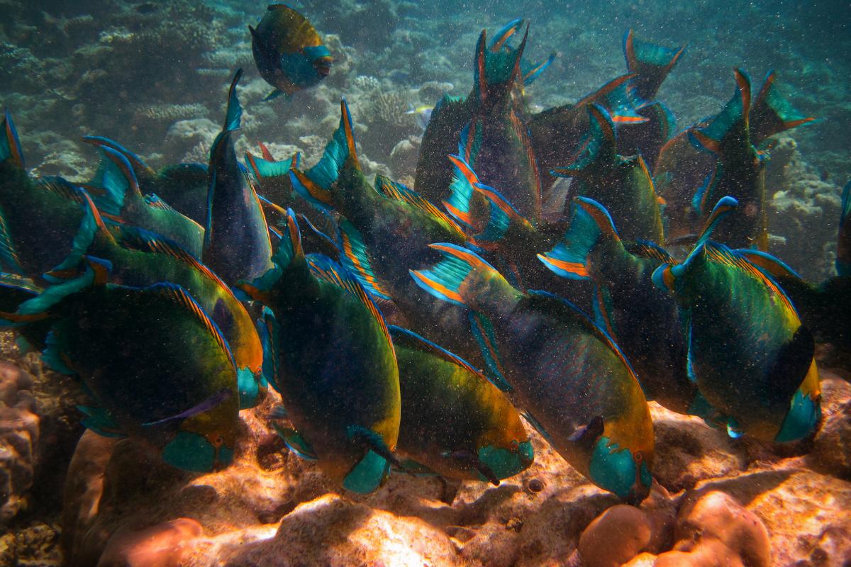 Los peces loro, pertenecientes a la familia Scaridae, son considerados como ingenieros ecosistémicos, ya que al comer y luego digerir trozos de roca y coral, expulsan un producto muy similar a la arena, provocando que se acumule en playas y atolones de arrecifes de coral. Puedes conocer mejor al Pez loro: características, hábitat y alimentación aquí.