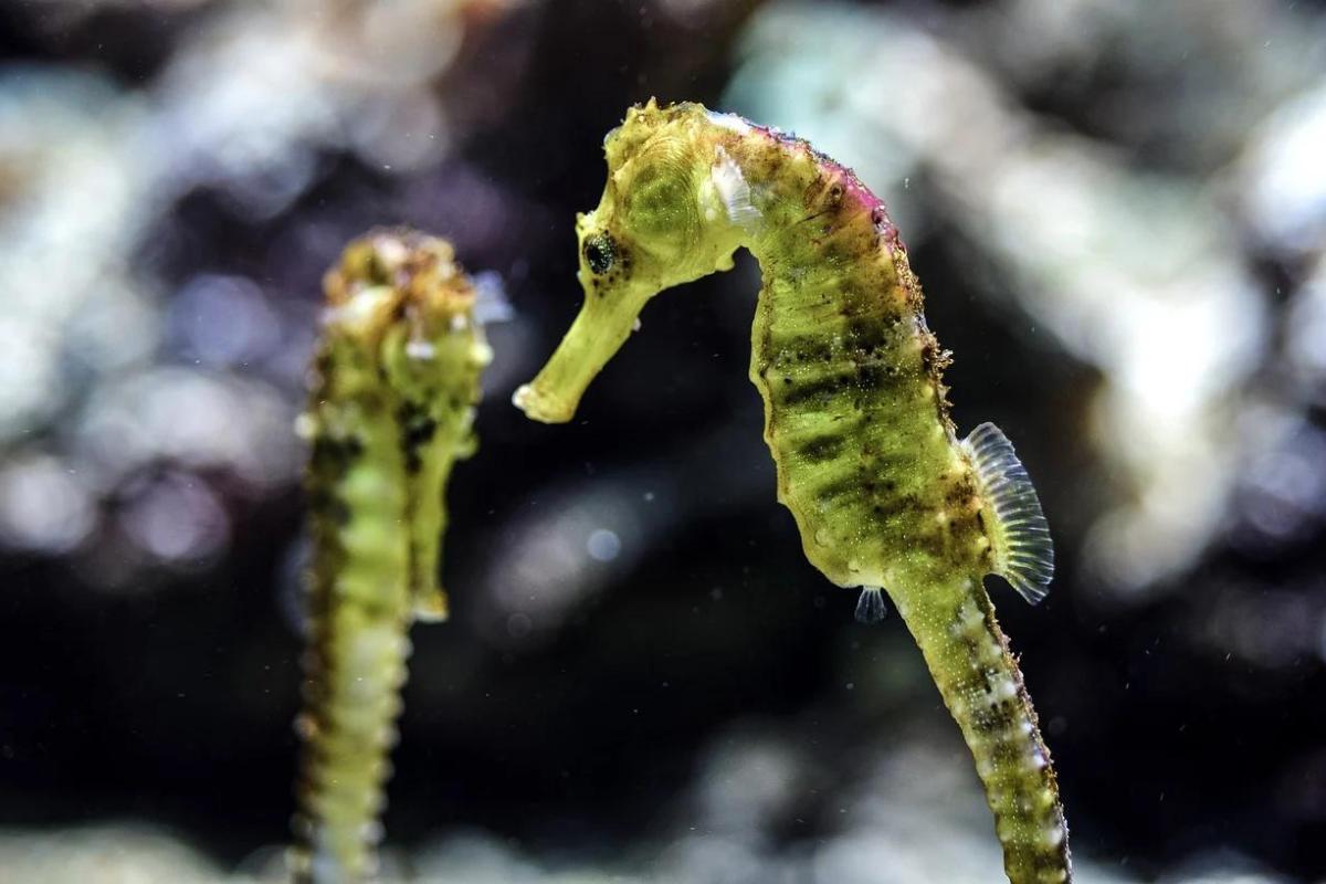También llamados hipocampos, esta especie cuenta con la particularidad de que son los machos quienes traen las crías al mundo. Es la hembra quien deposita los huevos en una bolsa en el interior del macho, así, él genera una especie de placenta y después alimenta a sus hijos.