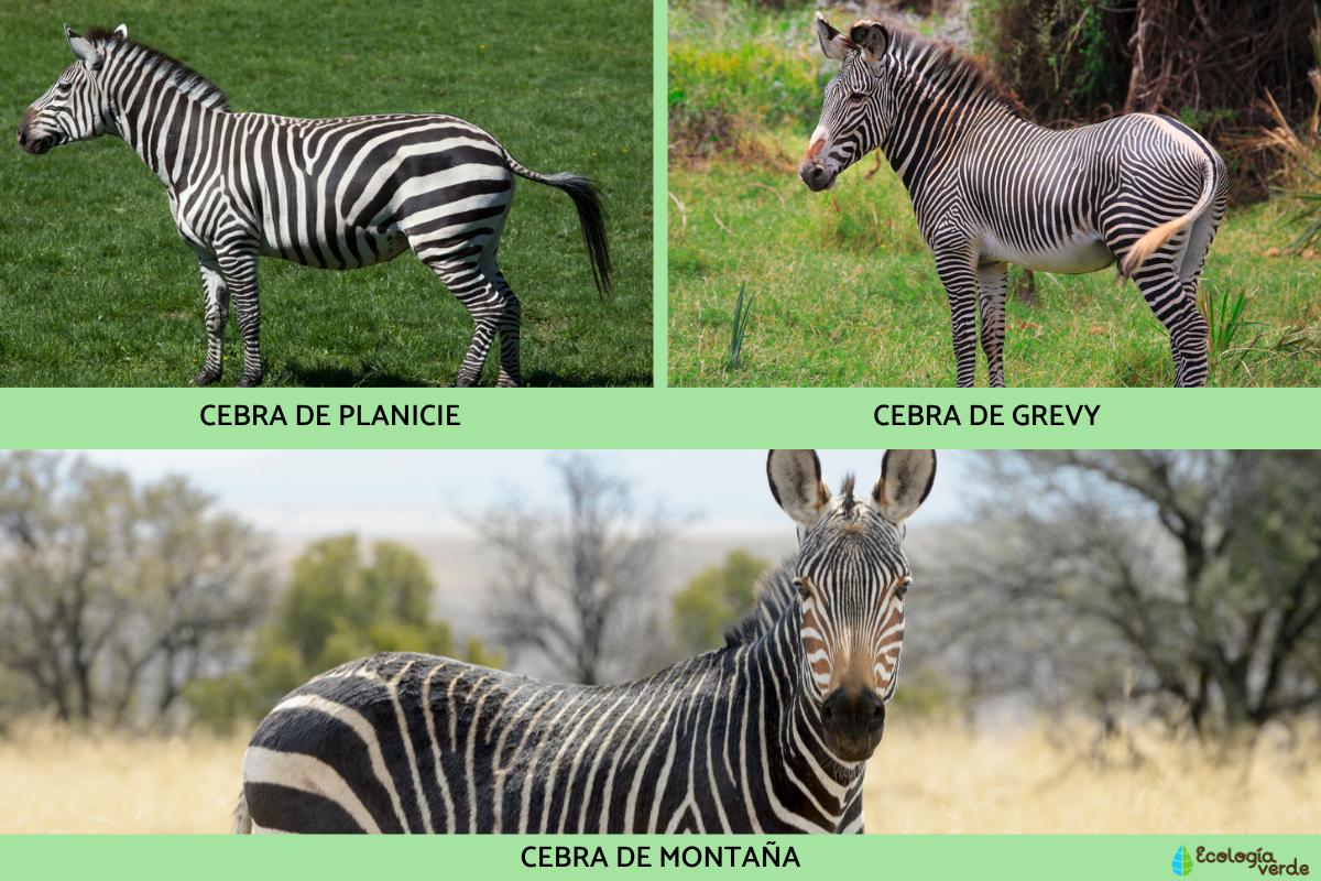 Las cebras de planicie (Equus quagga) tienen entre 20 a 60 rayas, y tiene incluso en las patas. La cebra de Grevy (Equus grevy) tiene entre 80 a 100, y es la cebra que más rayas tiene. Son delgadas y apretadas. Las cebras de montaña (Equus zebra) tienen rayas más espaciadas, con 30 a 40 rayas.