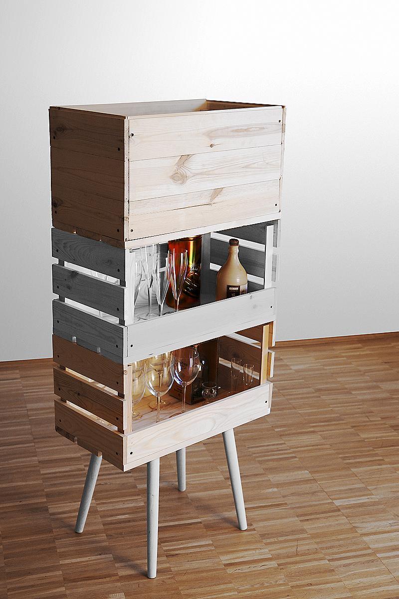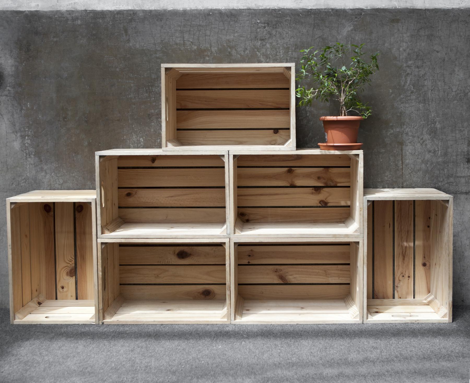 Estas cajas (por ejemplo, las de la fruta o cerveza) las adquirimos cuando compramos algún alimento en grandes cantidades (en una familia numerosa, las habrá a menudo). Si necesitas más de las que compras, no dudes en acercarte a un supermercado o frutería cercanos. A ellos les harás un favor porque no tendrán que deshacerse de tantas y tú les estarás dando una segunda vida al tiempo que embelleces tu hogar.