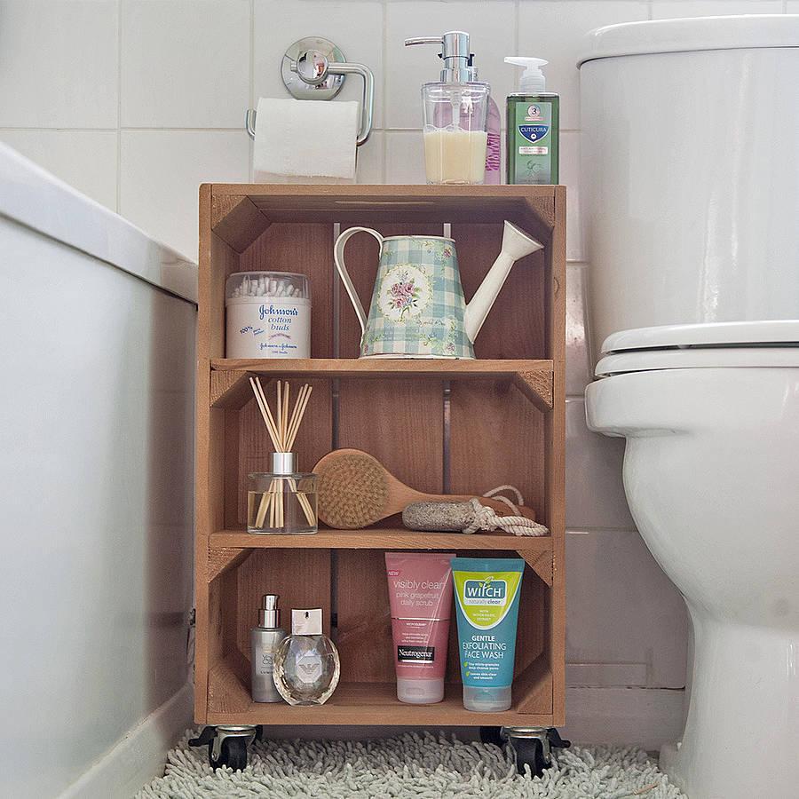 Estas cajas recuperadas nos darán un uso grandísimo en los cuartos de baño. Podemos, por ejemplo, fijarlas a la pared y guardar toallas (enrolladas o dobladas) o rollos de papel higiénico. También es un buen método para guardar nuestras cremas o cepillos de dientes. Si eres mañoso/a, incluso podemos dotarlas de un bonito espejo.