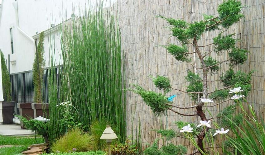 - Bambú plantado en diferentes macetas bien situadas en el jardín.