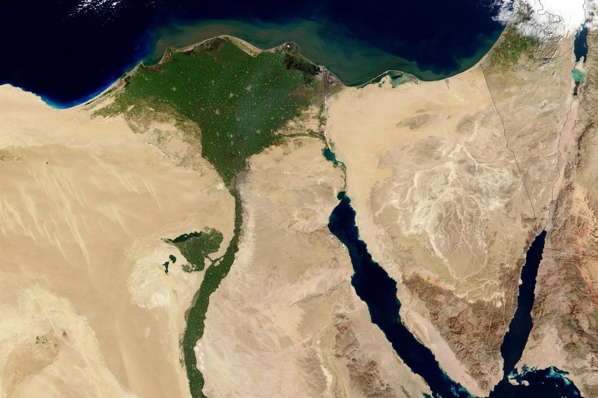 - Delta del río Nilo: el delta del río Nilo ubicado en el bajo Egipto, desemboca en el mar Mediterráneo y es considerado como uno de los mayores deltas fluviales del mundo, ya que abarca unos 160 km de longitud. En él, viven aproximadamente 40 millones de personas, siendo Alejandría la ciudad más grande de dicho delta.