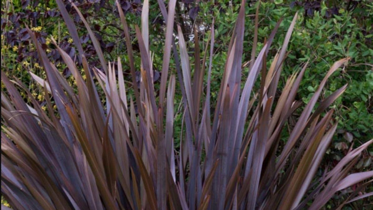 El lino de Nueva Zelanda es una planta similar a los pastos altos y de gran valor estético por la gama de sus colores. La variedad Purpureum tiene un morado muy oscuro, casi negro o café. No debe confundirse con el lino común: son dos plantas diferentes, aunque popularmente se le llama así.