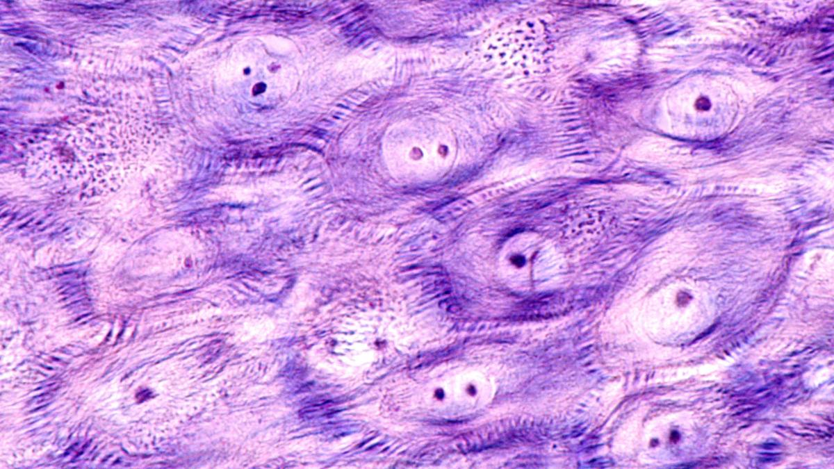 - Adhesión y resistencia mecánica. Proporciona una adhesión muy fuerte entre células vecinas, permitiendo que tejidos como la piel o el corazón resistan la tensión y el estiramiento. Gracias a esta unión, las células actúan como una red continua capaz de soportar fuerzas sin romperse.