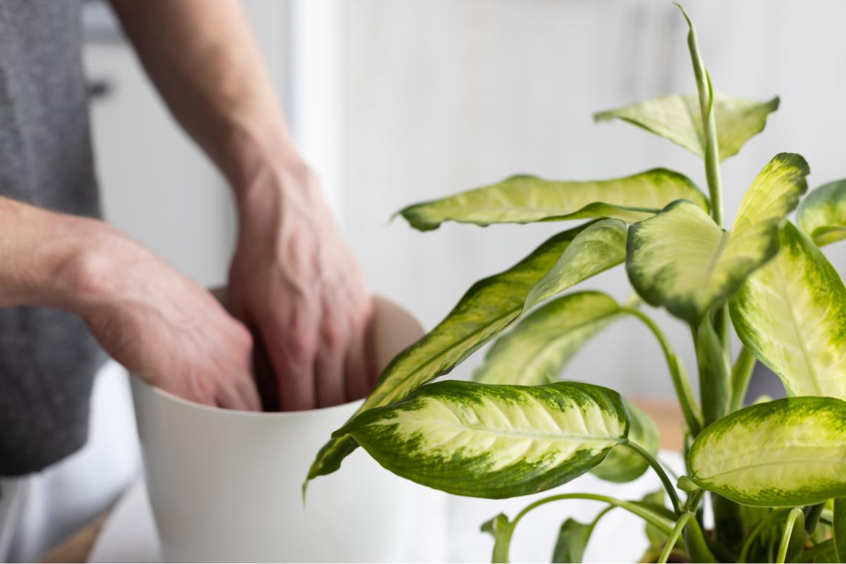 - Pudrición de la raíz: es una de las enfermedades de la Dieffenbachia originada por el exceso de riego. El entorno demasiado húmedo provoca que hongos y bacterias descompongan la raíz, terminando por pudrirla. Prepara un buen sustrato para reducir este riesgo, y riega sin empozar la maceta donde esté colocada. Te aconsejamos leer este otro artículo sobre la Poda de raíces: cuándo y cómo hacerla.
