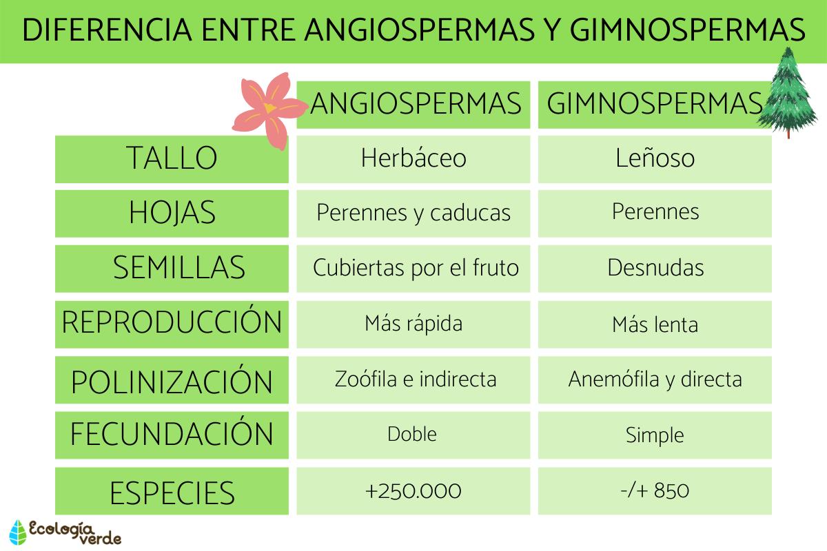 Resumen de las diferencias entre angiospermas y gimnospermas