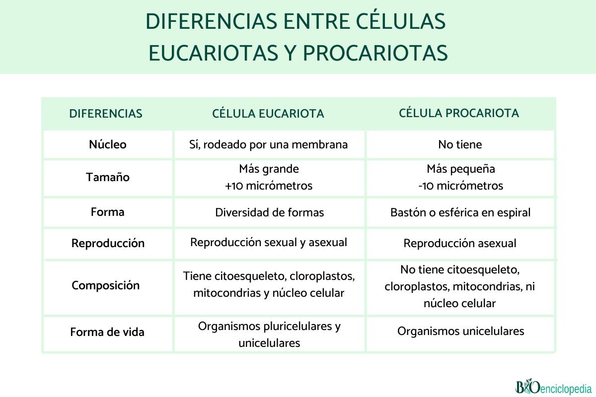 En el siguiente cuadro te mostramos las diferencias entre células eucariotas y procariotas a modo de resumen.