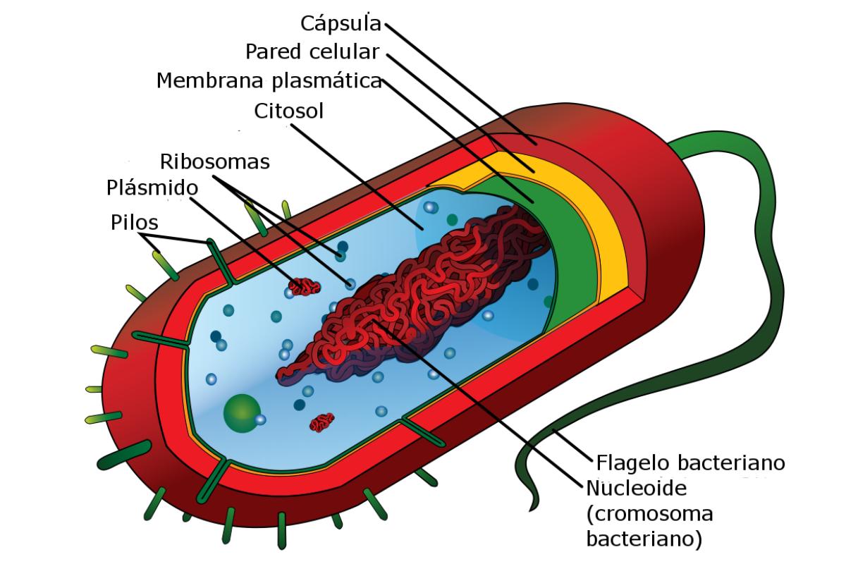 - Célula procariota: no tiene citoesqueleto, cloroplastos, mitocondrias, ni núcleo celular.