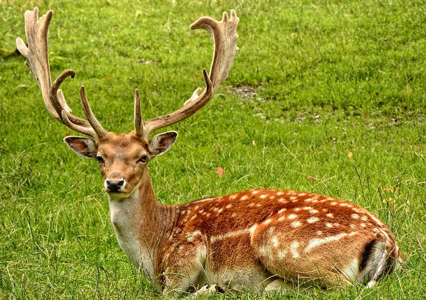 Es endémico de Eurasia, aunque desapareció de gran parte de su zona nativa por la última Edad de Hielo. Hoy solamente se encuentra en el Mediterráneo y una parte de Asia. Es reconocible porque tiene el pelaje pardo claro con motas blancas durante su etapa adulta, algo peculiar porque en otras especies las crías suelen tenerlas y luego perderlas cuando crecen. Algunos pueden ser completamente blancos. Los machos tienen una franja negra en la espalda hasta la cola y cuernos ramificados palmeados y doblados hacia atrás. Miden de 1.3 a 1.5 metros de largo.