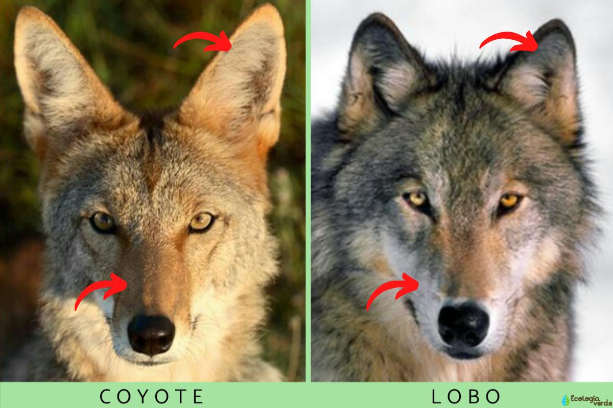 - Las orejas de los lobos son redondeadas mientras que las del coyote son en forma de pico. También, las del coyote son más largas que las del lobo.