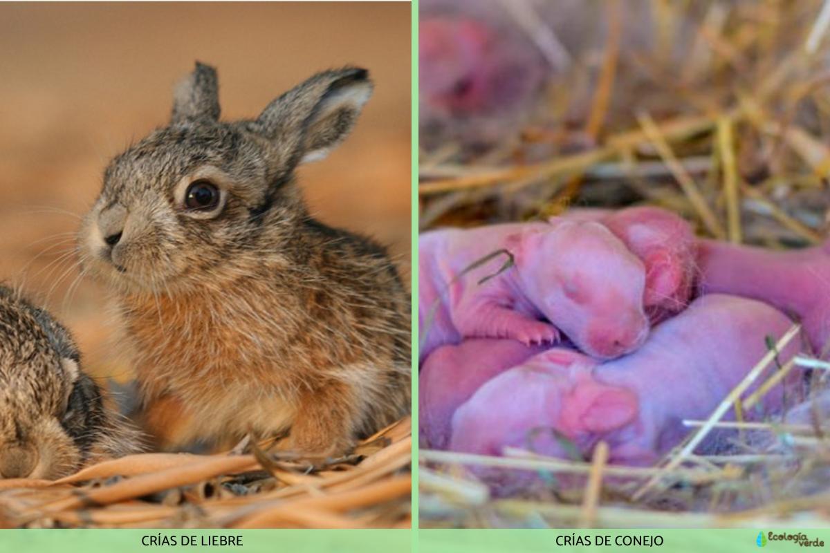 En la imagen de abajo ejemplificamos las crías de liebre y conejo para que puedas apreciar esta gran diferencia entre liebre y conejo.